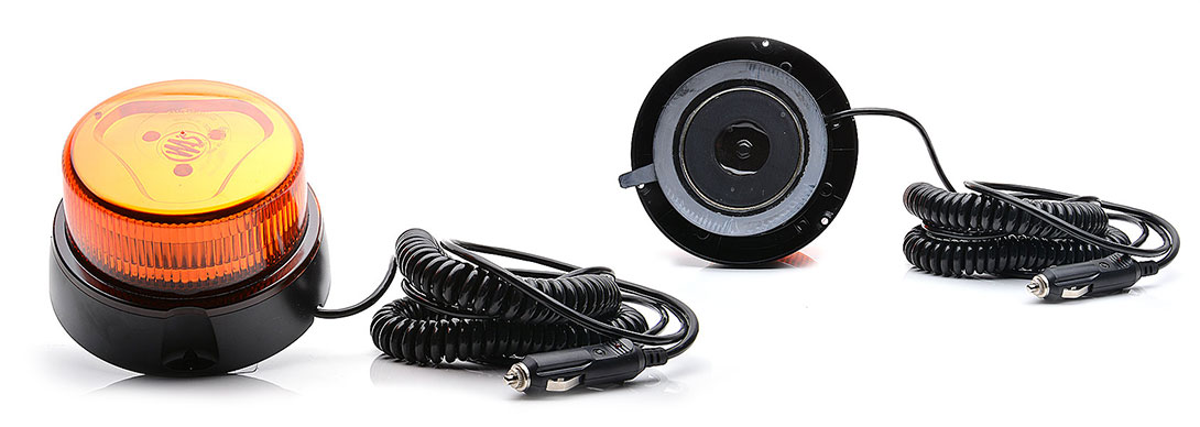 Маяк светодиодный (1-й, желтый, магнит, штекер + спиральный провод 7м, 10V-32V)