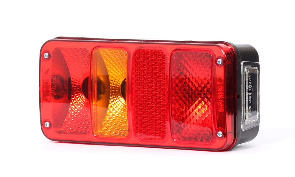Фонарь многофункциональный задний с отражающим устройством, левый, подсветка номера сбоку, лампа, 12V-24V