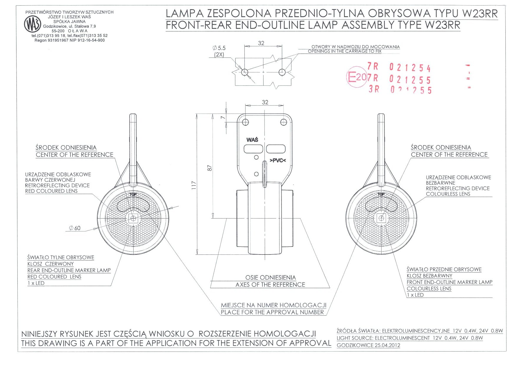 Фонарь габаритный диодный передне-задний 12/24 V