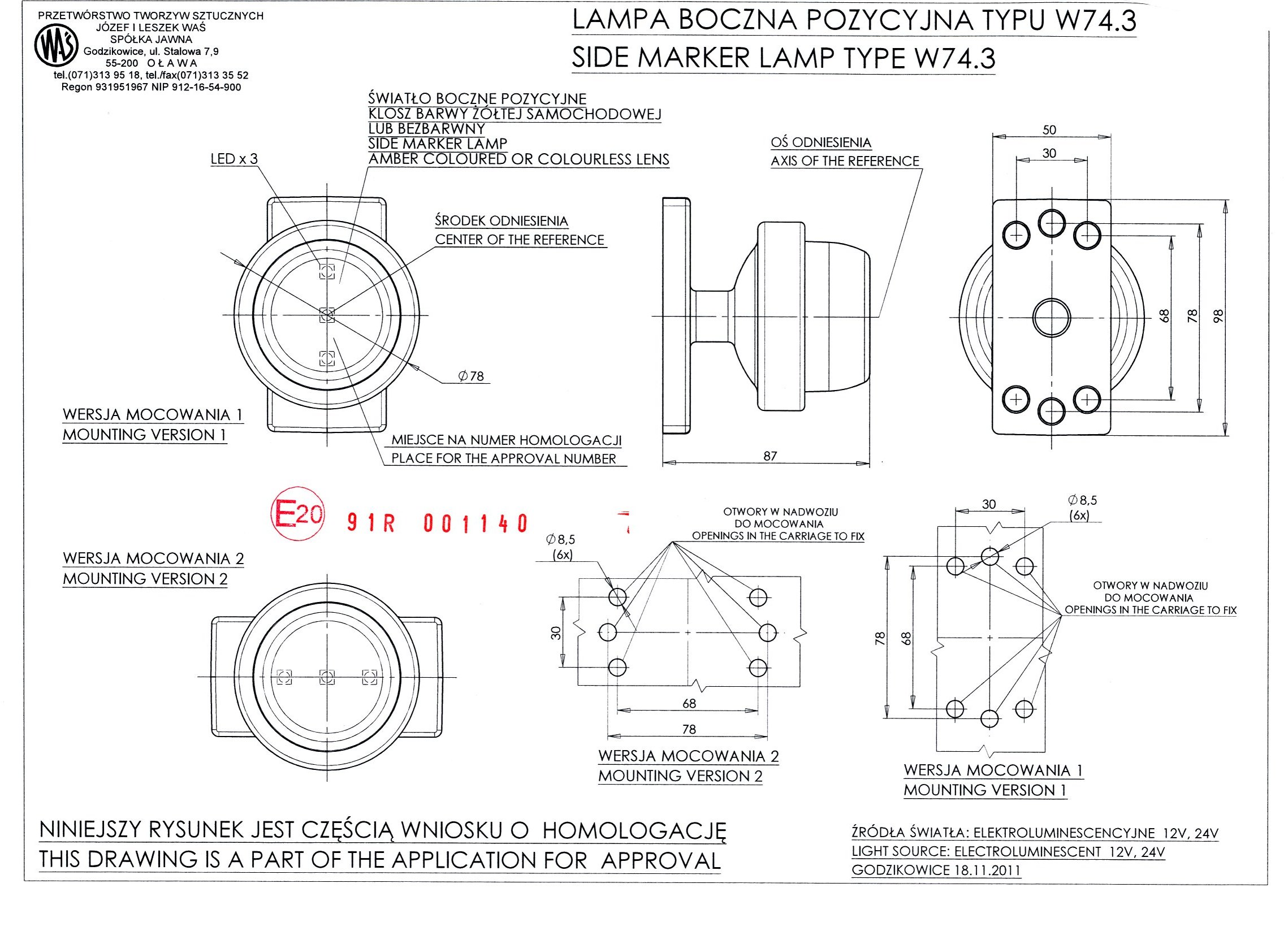 Фонарь габаритный боковой