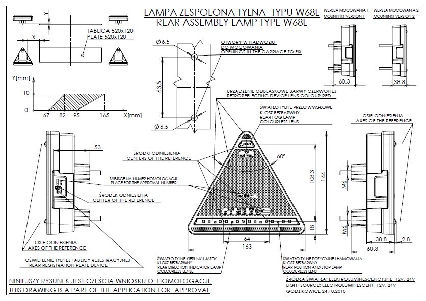 Фонарь задний, блочный, правый, в виде триугольника, светодиодный 12V-24V